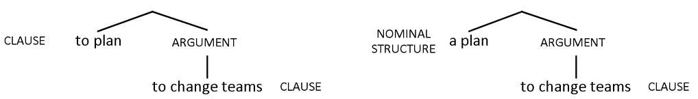 Each of the propositions in figure 1 can be expressed as a clause or as a clause-like nominal structure. The relations of semantic hierarchy between predicates and arguments in figure 2 are the same.