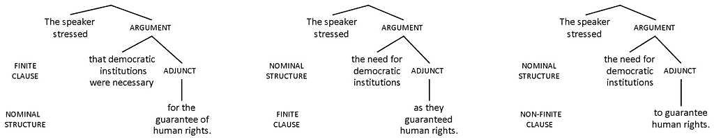 The relations between a parent and a subordinate proposition can sometimes be recast with minimal differences in meaning from one syntactic form to another, as illustrated in figure 3.