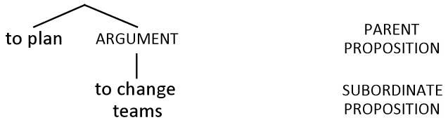 One proposition can be subordinate to another, parent proposition, as illustrated in figure 1.