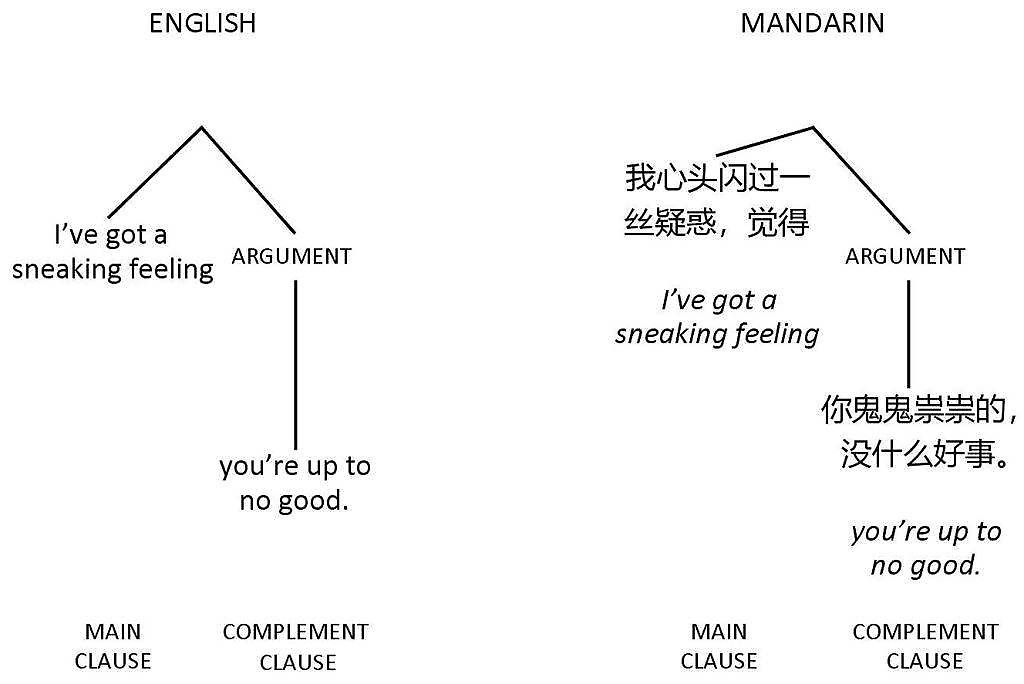 In a Sinitic language, just as in a European language, a complement clause typically follows its parent clause in a right-branching structure, as illustrated in figure 6.